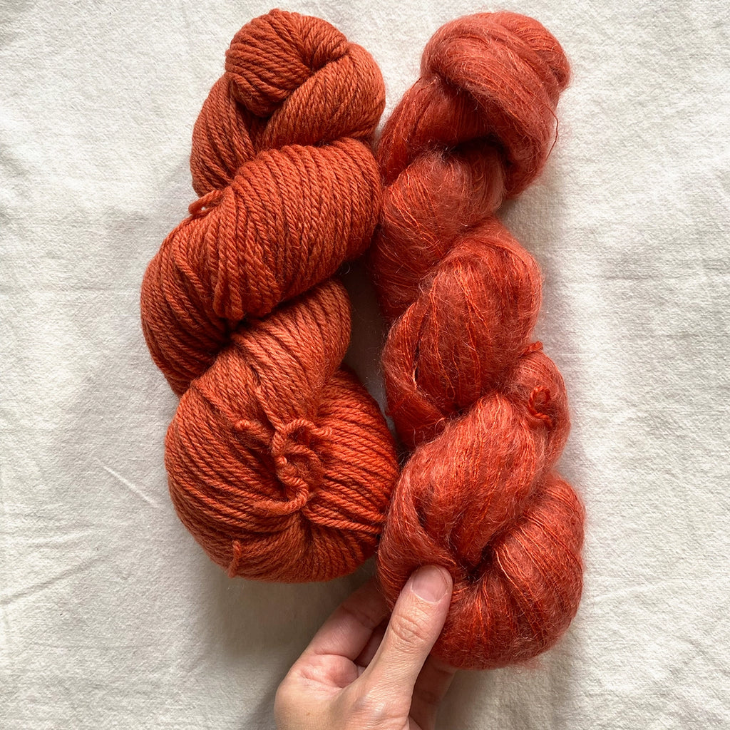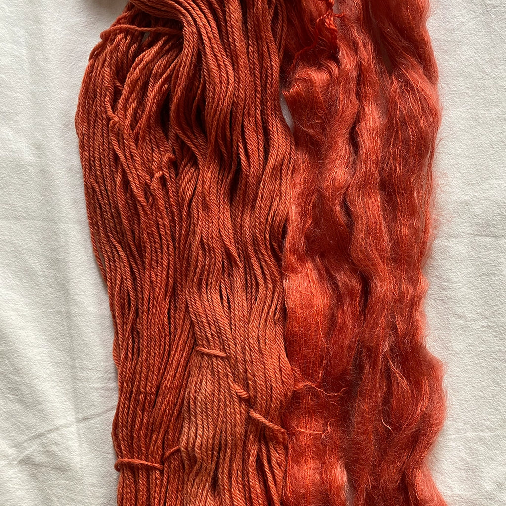 BUNDLE. Hand-Dyed Wool by Fluffwear. Copper / Cinnamon tone. 1 Skein of Merino and matching 1 skein mohair x silk.